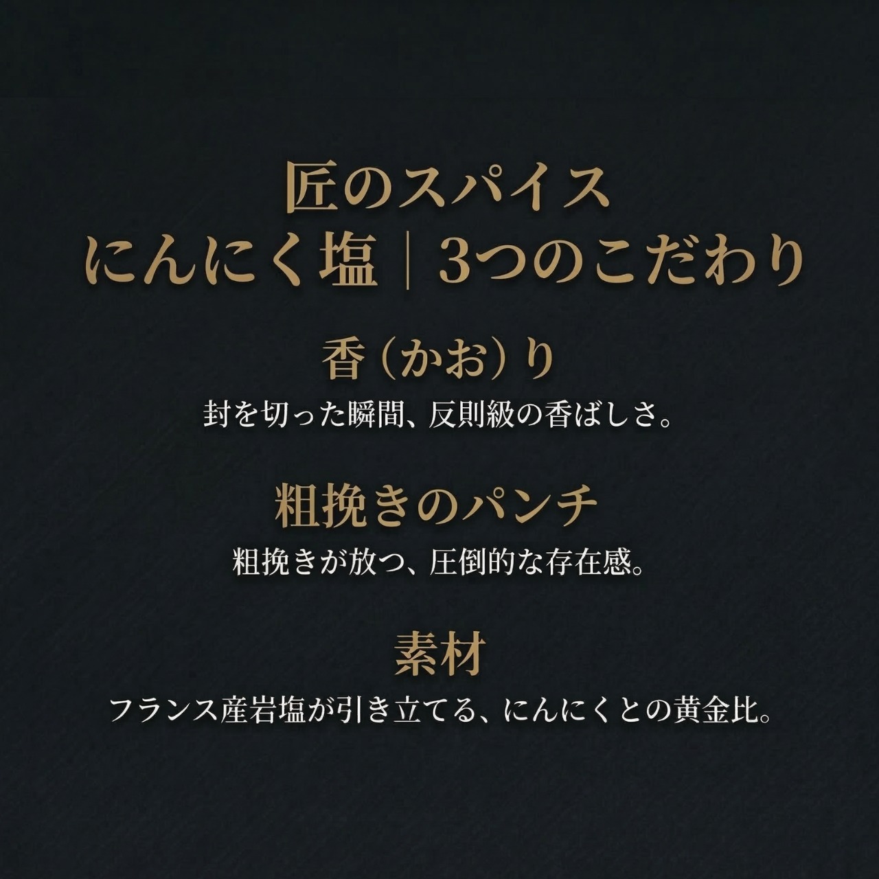 ✅【フランス産岩塩の黄金比】まろやかな岩塩がにんにくの旨みを引き立てる絶妙バランス。