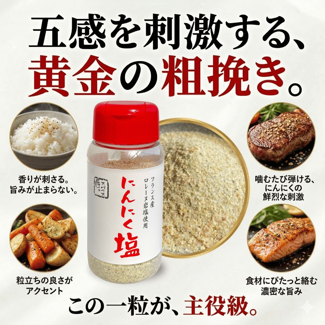 ✅【フランス産岩塩の黄金比】まろやかな岩塩がにんにくの旨みを引き立てる絶妙バランス。
