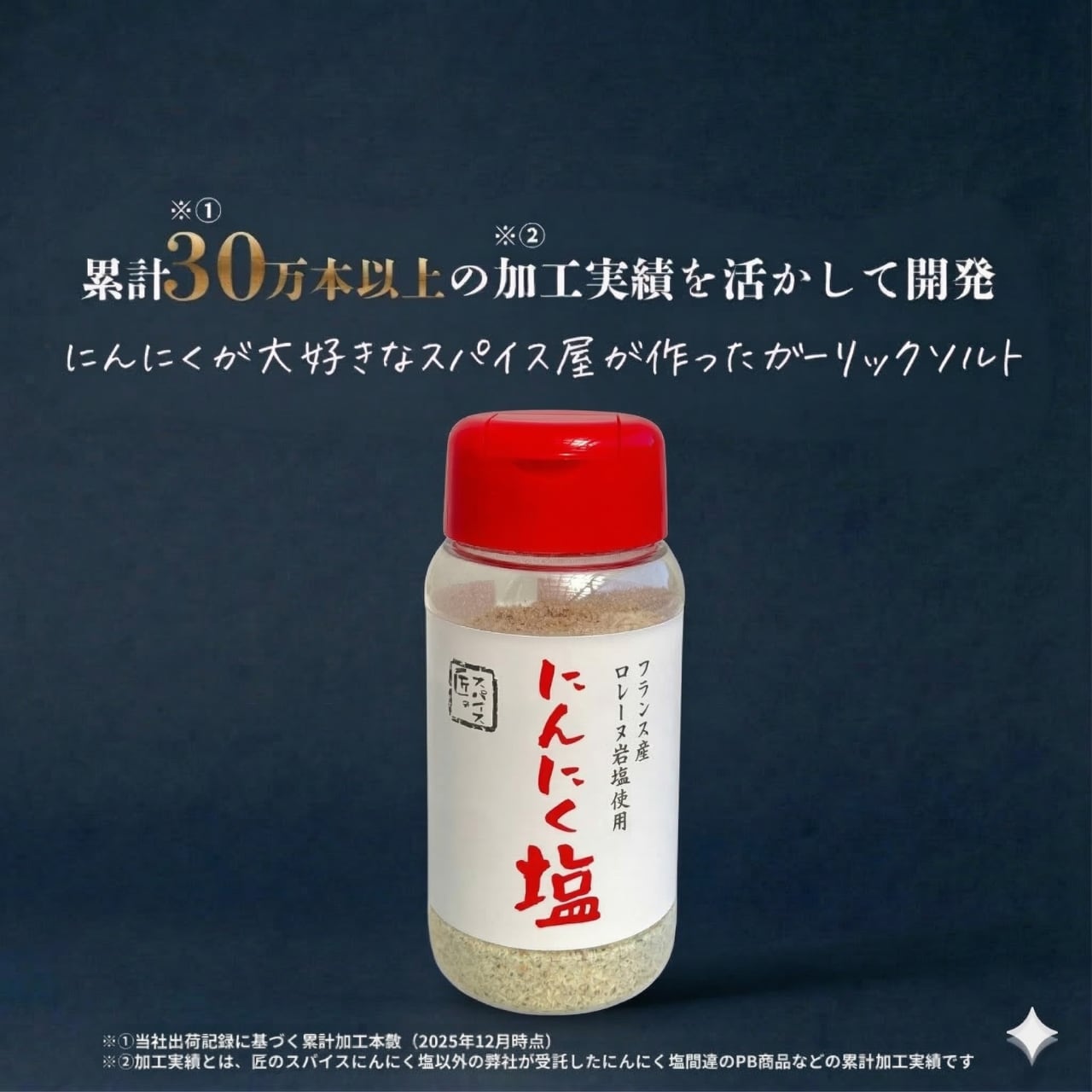 ✅【累計30万本以上の加工実績】信頼の品質。にんにく塩関連商品の累計加工本数に基づく実績。
